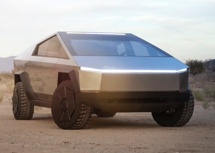 Le Cybertruck bénéficie d’un habitacle à six places et d’une benne longue de 1,98 m pouvant emporter jusqu’à 1 590 kg de charge. Sa carrosserie est en acier inoxydable laminé à froid très résistant aux chocs.